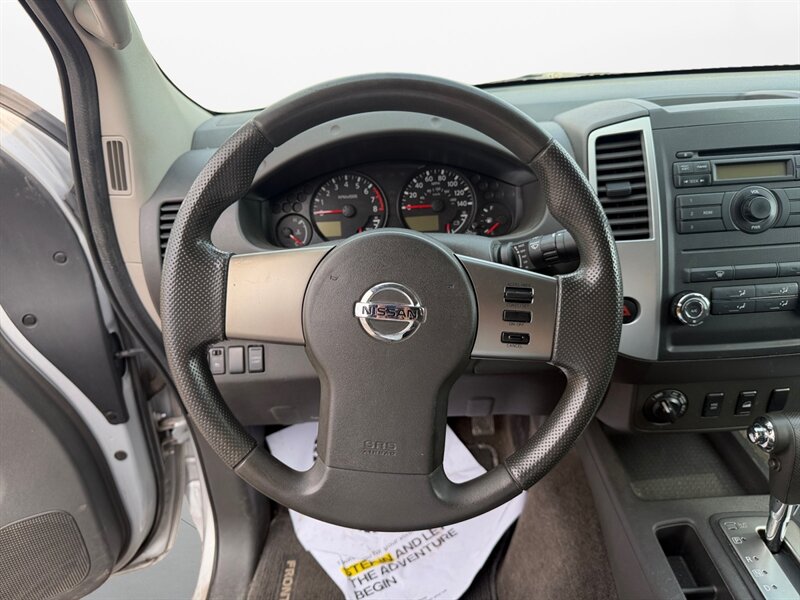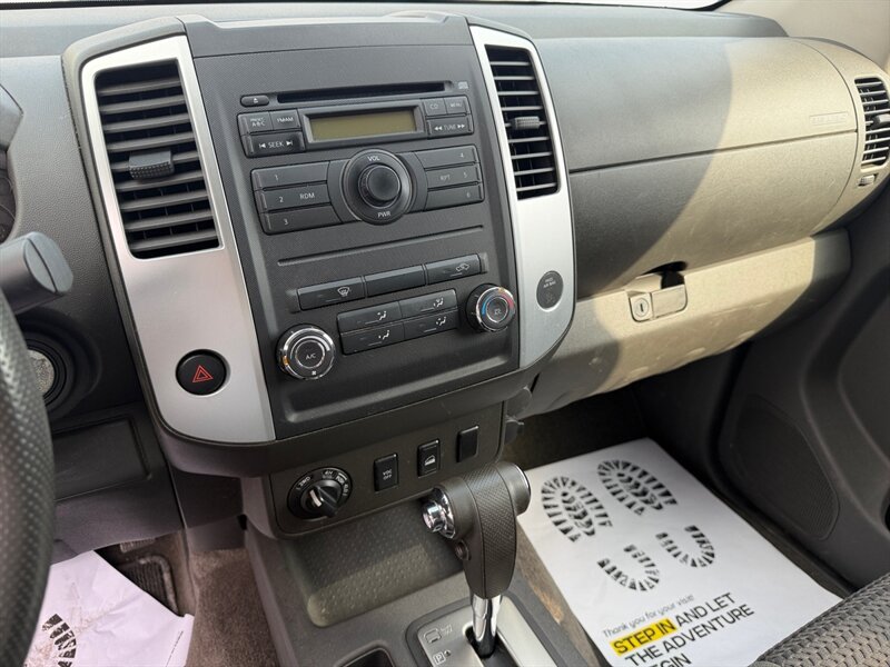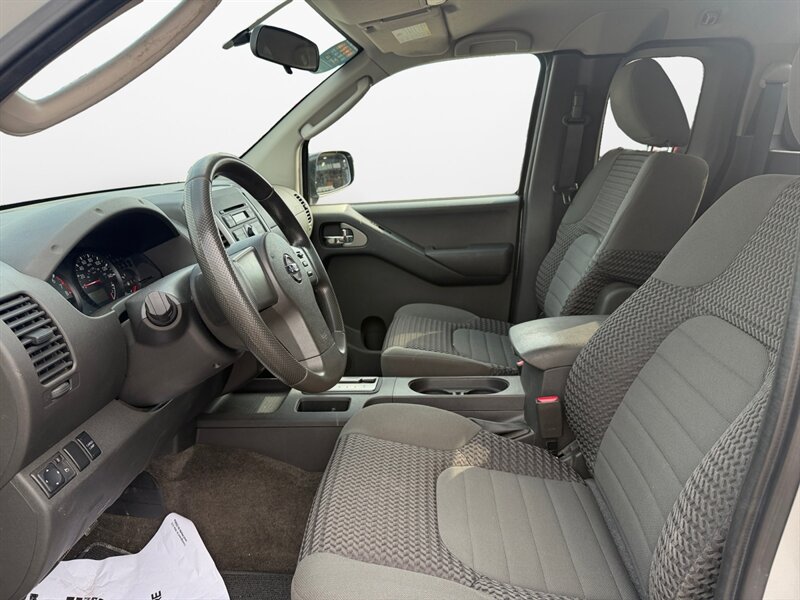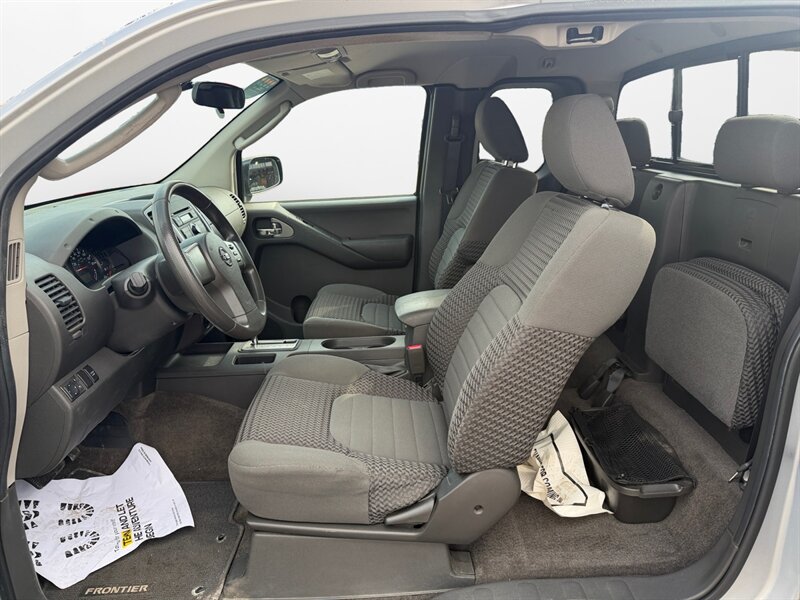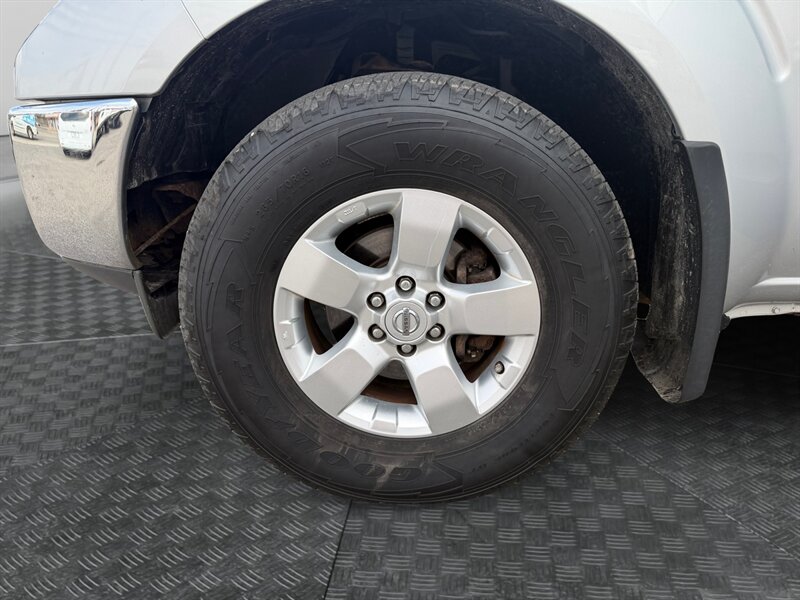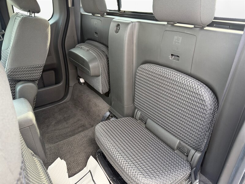 2011 Nissan Frontier SV V6 — Radiant Silver exterior, Graphite interior. This Frontier is powered by the factory 4.0L V6 producing 261 hp and 281 lb-ft of torque, and is equipped with the factory transmission (typically a 5-speed automatic; a 6-speed manual was also available on some configurations). The truck returns EPA-estimated fuel economy of approximately 14 MPG city and 19 MPG highway. It has under 99,000 miles (averaging less than 7,000 miles per year), is in excellent overall condition, and has a clean CARFAX report.