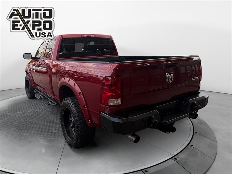 The exterior of this RAM 1500 is finished in a sleek Black color, giving it a bold and commanding presence on the road. The streamlined design is complemented by functional features such as chrome bumpers, a rear step bumper, and easy-to-access side steps, enhancing both aesthetics and practicality.