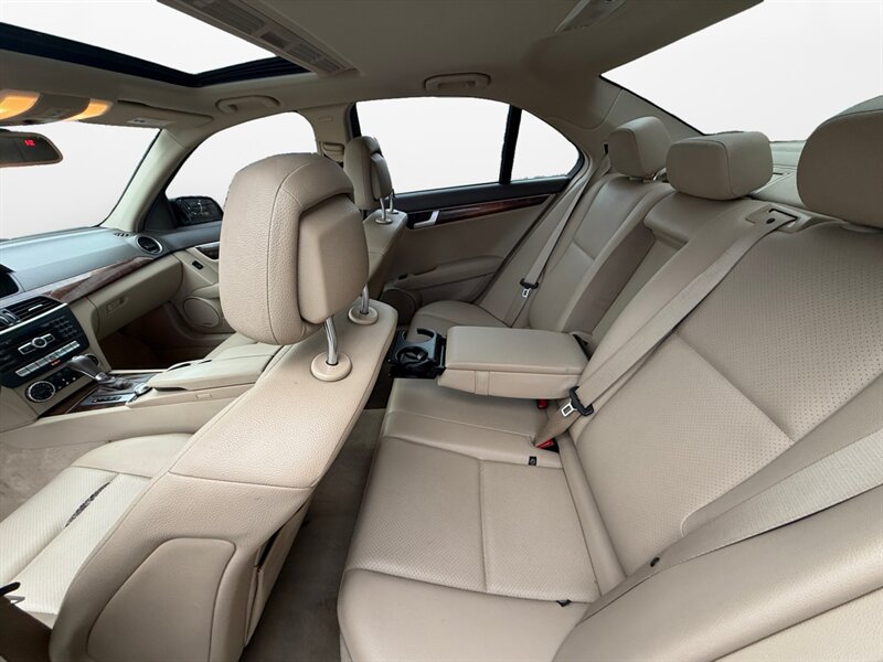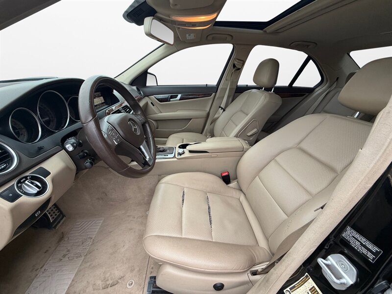 This C 300 Sport 4MATIC combines Mercedes-Benz V6 performance with full-time all-wheel drive and Sport trim styling. The 3.5L V6 and seven-speed automatic provide smooth, responsive acceleration and confident highway performance, while 4MATIC improves traction and composure in varied road conditions. The vehicle presents in Black exterior paint over a Sahara Beige/Black interior and is in excellent overall condition with a clean CARFAX history.