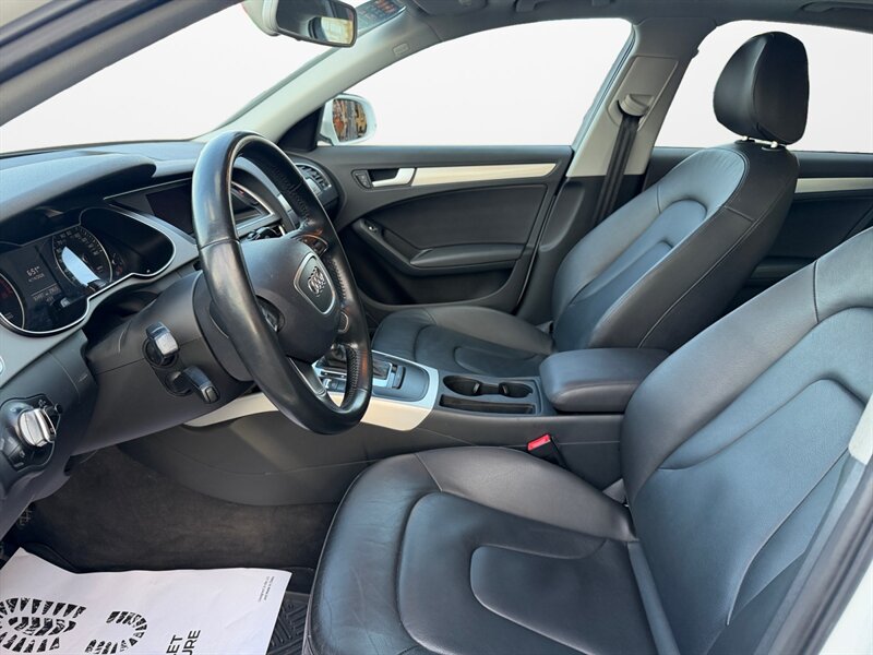 This 2015 Audi A4 2.0T quattro Premium is powered by a 2.0L Flex Fuel turbocharged inline-4 producing 220 hp and 258 ft-lbs of torque, paired with Audi’s quattro all-wheel-drive system. The vehicle is finished in Ibis White on the exterior with a Black interior. It has below 94,000 miles — averaging under 8,000 miles per year — and presents in excellent overall condition. The CARFAX report is clean.