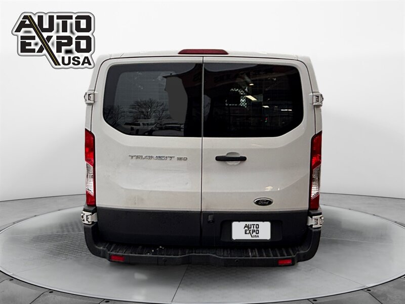 2015 Ford Transit 150 — Green Gem Metallic exterior. This Transit is powered by the factory 3.7L Flex Fuel V6 (275 hp, 260 lb-ft) paired with the 6-speed automatic transmission and rear-wheel drive. The vehicle has below 119,000 miles (averaging under 10,000 miles per year), a clean CARFAX report and a single owner. It is in excellent overall condition.