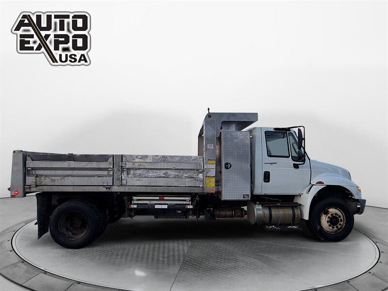 This 2015 International DuraStar 4300 is a clean, well-maintained medium-duty dump truck in excellent overall condition with a clean CARFAX. Finished in White on the outside with a Black interior, it is powered by the Cummins ISB 6.7L inline-6 turbocharged diesel (rated in the 200–325 hp / 520–750 lb-ft torque range), a proven commercial powerplant built for durability and sustained low-end torque under load.