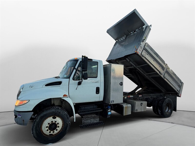 This 2015 International DuraStar 4300 is a clean, well-maintained medium-duty dump truck in excellent overall condition with a clean CARFAX. Finished in White on the outside with a Black interior, it is powered by the Cummins ISB 6.7L inline-6 turbocharged diesel (rated in the 200–325 hp / 520–750 lb-ft torque range), a proven commercial powerplant built for durability and sustained low-end torque under load.