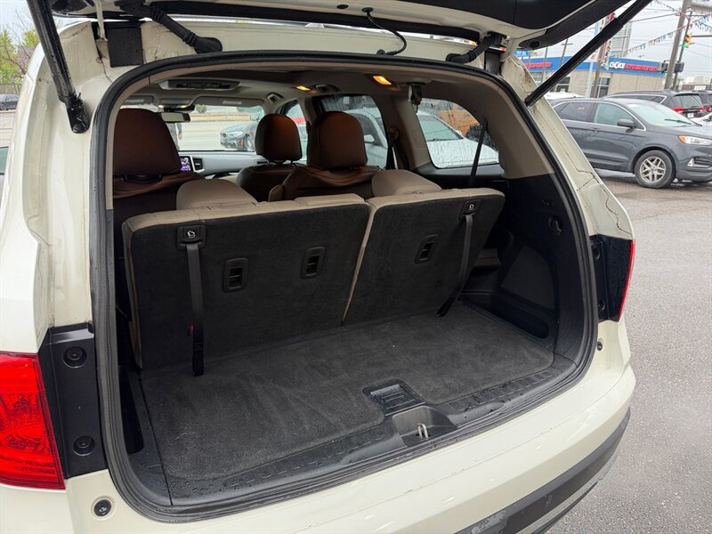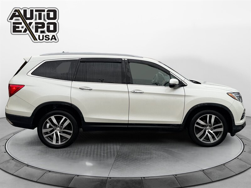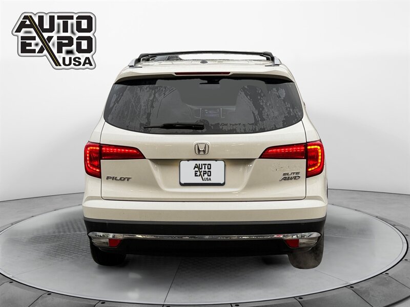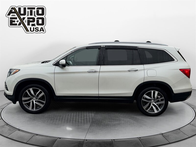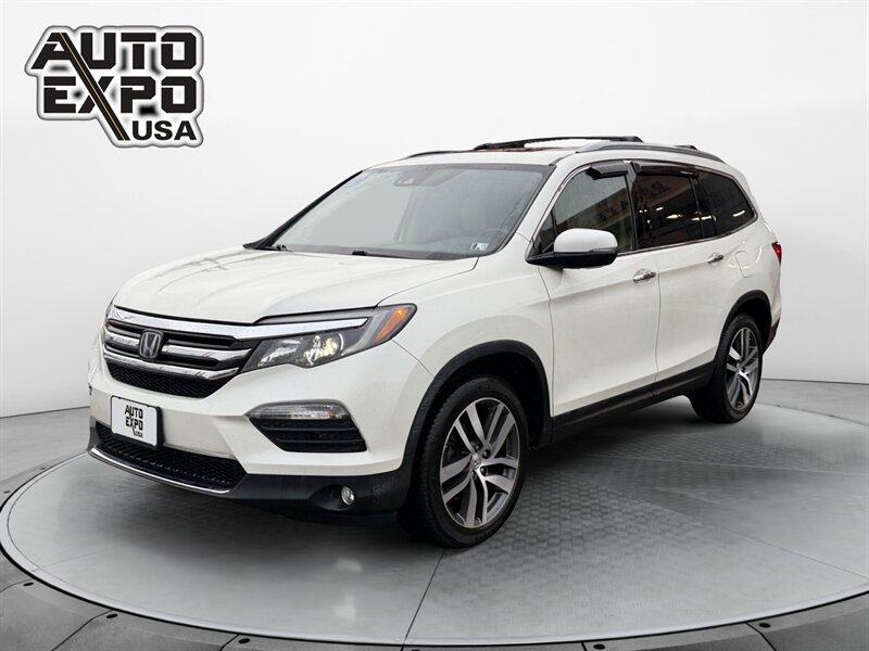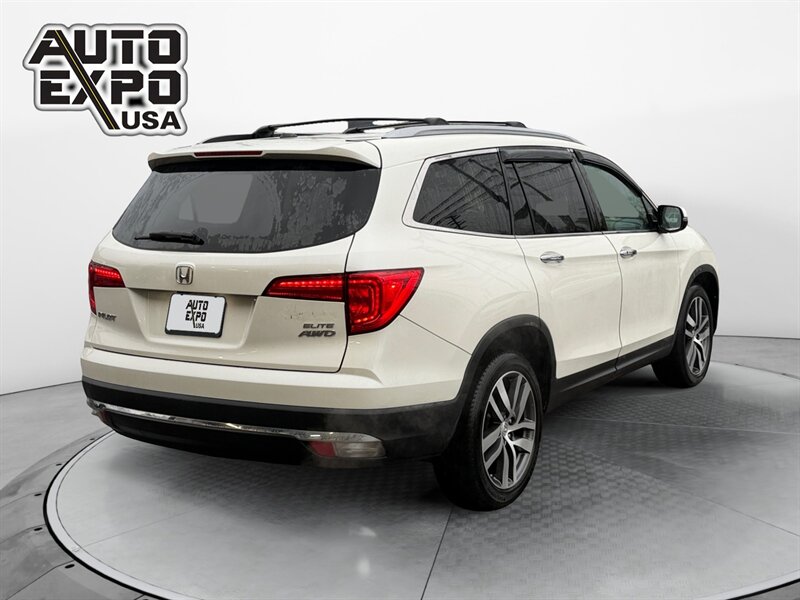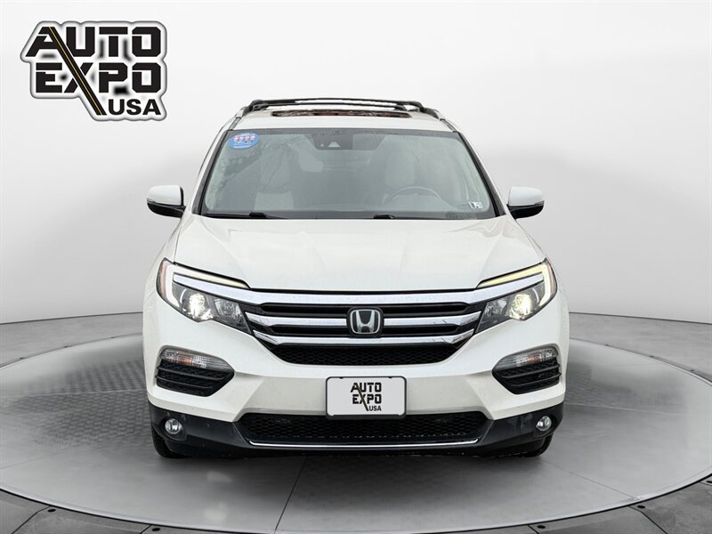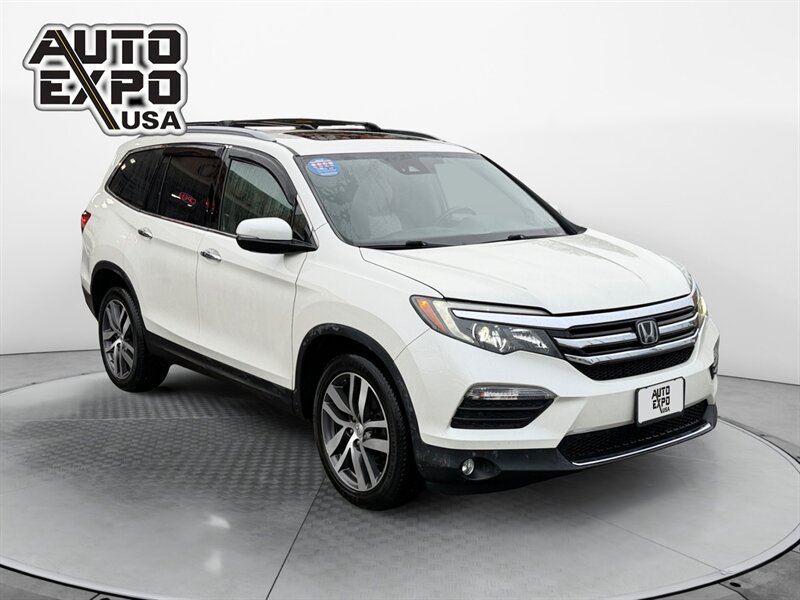 2016 Honda Pilot Elite — White Diamond Pearl exterior with a Gray leather interior. Powered by the factory 3.5L V6 (280 hp / 262 lb-ft), this Pilot delivers a balanced combination of power and efficiency, rated at 19 MPG city and 26 MPG highway. The vehicle is in excellent overall condition and shows a clean CARFAX.