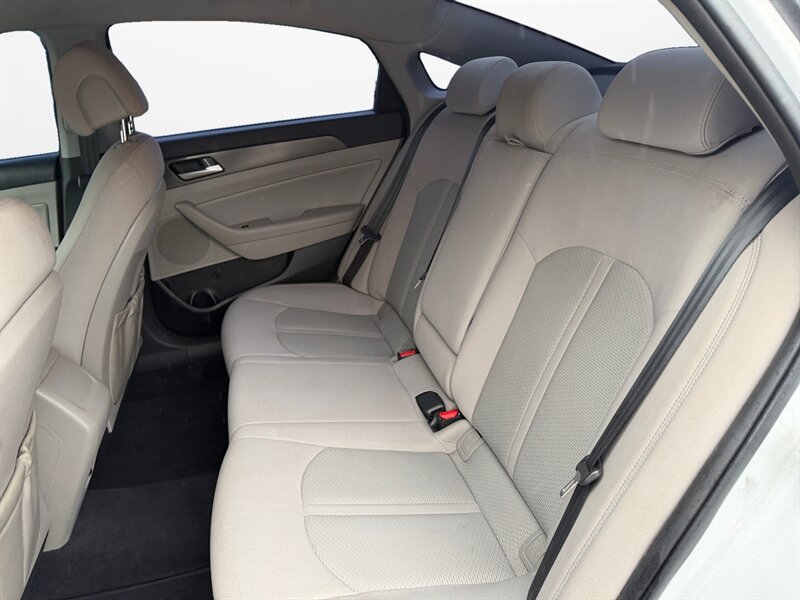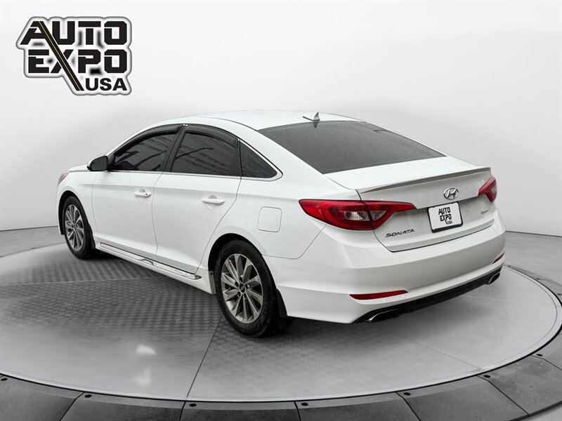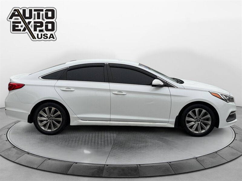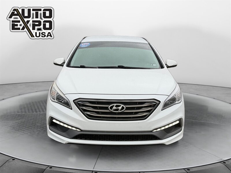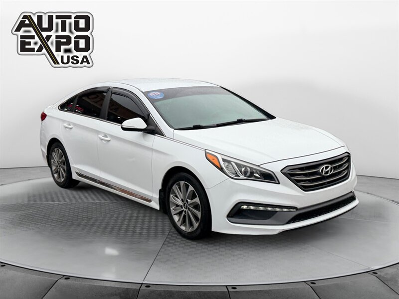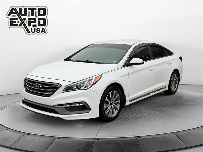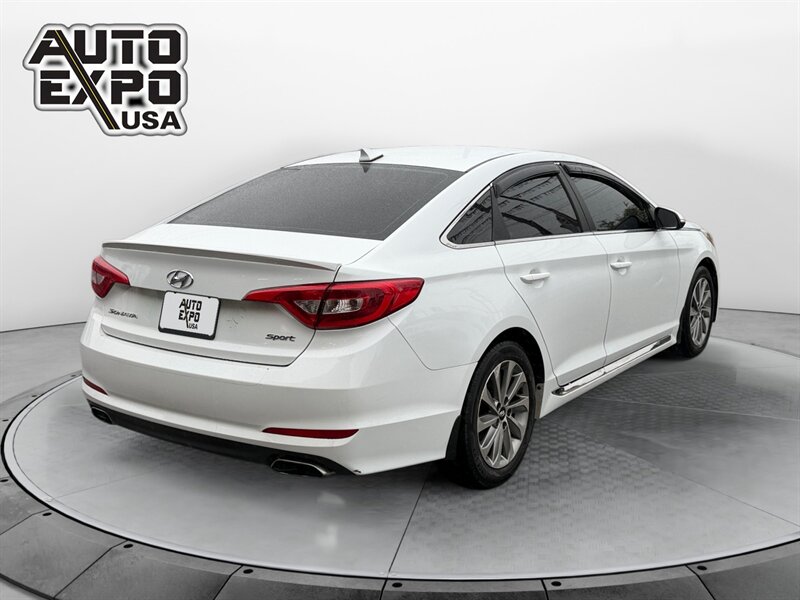 2016 Hyundai Sonata Sport — Quartz White Pearl exterior with Gray interior. Powered by a 2.4L I4 engine producing 185 hp and 178 lb-ft of torque, paired with a smooth-shifting 6-speed automatic transmission and front-wheel drive. EPA-estimated fuel economy is 25 MPG city and 36 MPG highway. This vehicle is in excellent overall condition and comes with a clean CARFAX report.