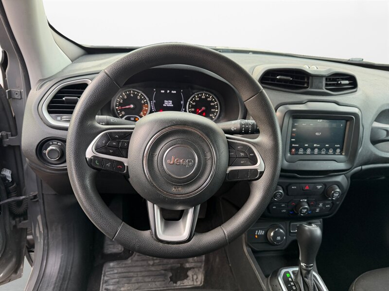 The exterior of this Renegade is finished in a sleek Sting-Gray Clear Coat, providing a modern and stylish look that stands out. The compact dimensions of the Renegade make it easy to maneuver, while the iconic Jeep design elements, including the seven-slot grille and bold stance, reinforce its adventurous spirit.