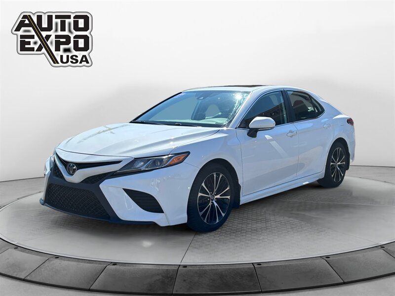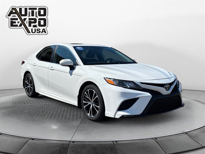 2019 Toyota Camry SE — Super White exterior, Black interior. This Camry is in excellent overall condition with a clean CARFAX.
