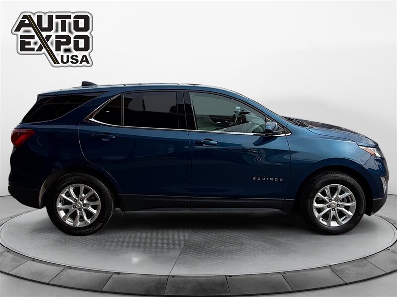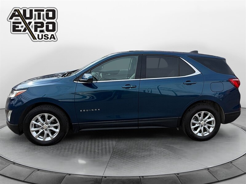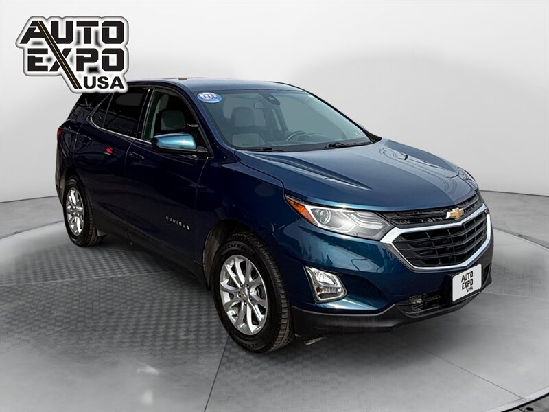 2020 Chevrolet Equinox LT — Pacific Blue Metallic exterior with Jet Black interior. This Equinox is powered by a 1.5L Turbo I4 engine producing 170 hp and 203 lb-ft of torque, delivering an EPA-rated 26 MPG city and 31 MPG highway. The vehicle is in excellent overall condition and has a clean CARFAX report.