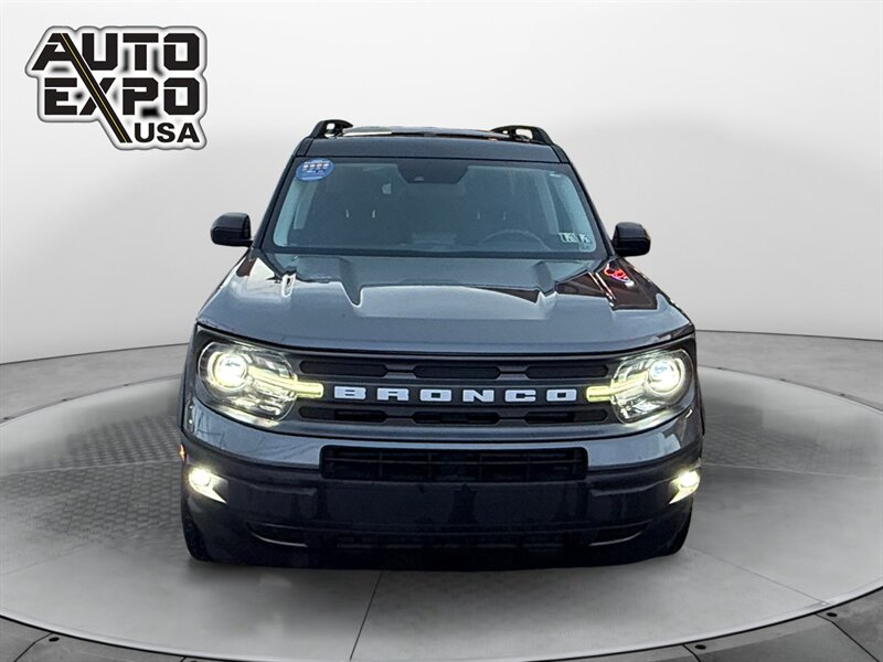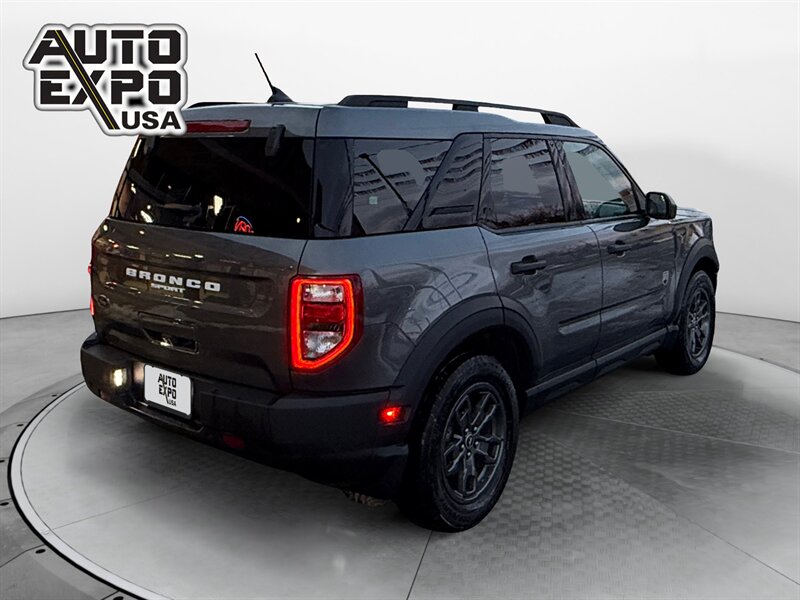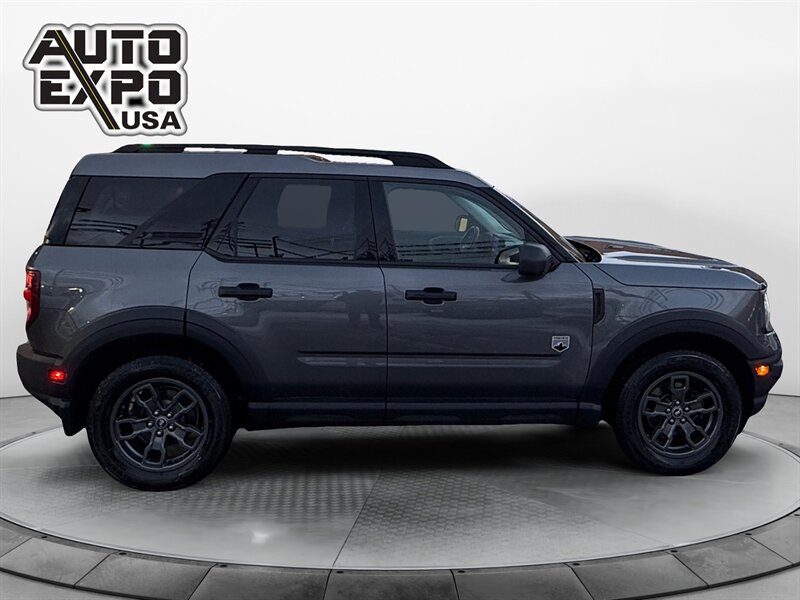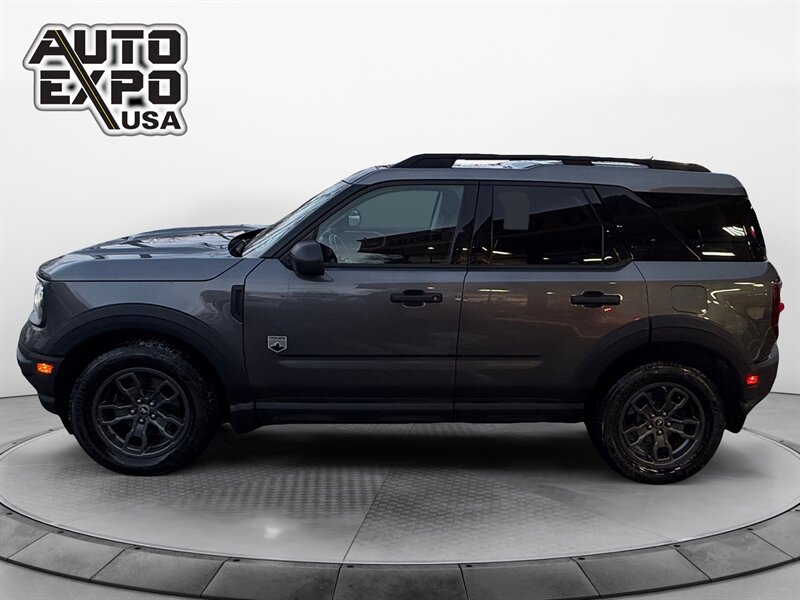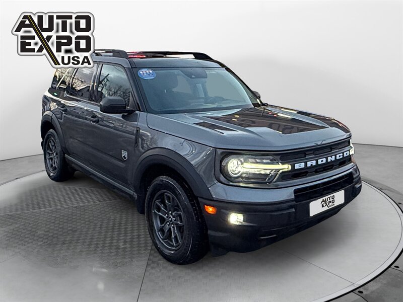 2021 Ford Bronco Sport Big Bend — Carbonized Gray exterior, Ebony interior. This Big Bend comes with the factory 1.5L EcoBoost turbocharged inline-3 producing 181 hp and 190 lb-ft of torque, and delivers EPA-rated fuel economy of 25 MPG city / 28 MPG highway. The vehicle is in excellent overall condition, has a clean CARFAX, and shows a single prior owner.