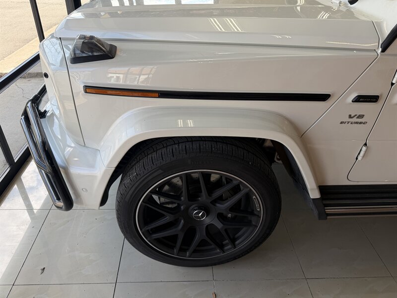 - Factory AMG wheels and high-performance tires sized for the AMG G 63 specification; exact wheel size varies with factory optioning.